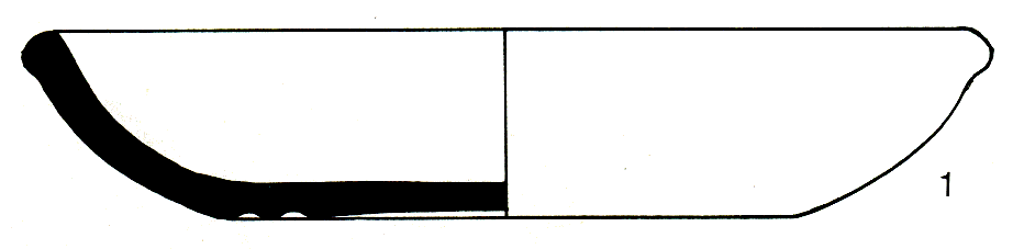 base étirée, assise plane ; céramique tournée, pâte de couleur noire, jaunâtre en surface ;