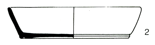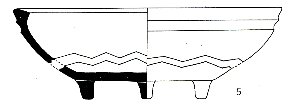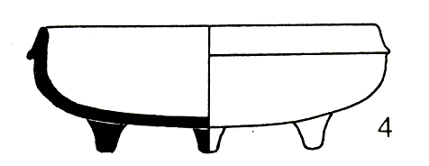 rebord épaissi à l'intérieur, lèvre plate ; pieds coniques verticaux ; céramique tournée,