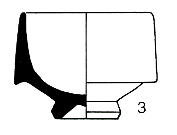 encolure rentrante, rectiligne, rebord triangulaire, lèvre plate ; pied en couronne bas ;
