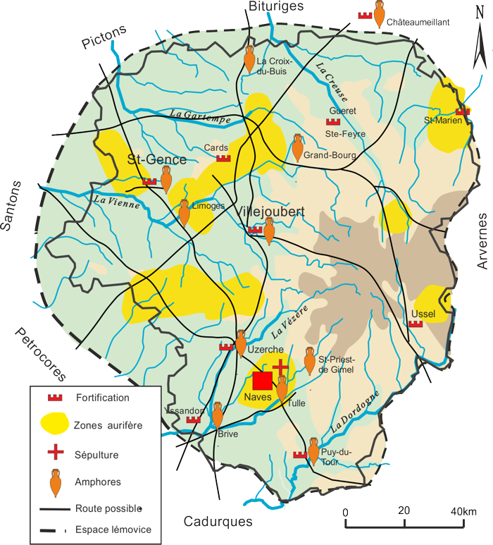 Au deuxième âge du fer, la Gaule est une mosaïque de peuples implantés sur des territoires dont les limites se précisent progressivement. Au moment de la Conquête, les Lémovices occupent un espace qui coïncide avec l'ancien diocèse de Limoges et correspond approximativement au socle granitique. Dans la partie ouest de la civitas, la frontière avec les Pétrocores, les Santons, les Pictaves et les Bituriges est pratiquement calquée sur la limite géologique. Le Nontronnais et le Confolentais, au sud et à l'ouest de la Haute-Vienne, faisaient partie de l'ancien diocèse de Limoges, de même que les vicairies du Vert et de Rouffiac actuellement situées dans le Cantal.